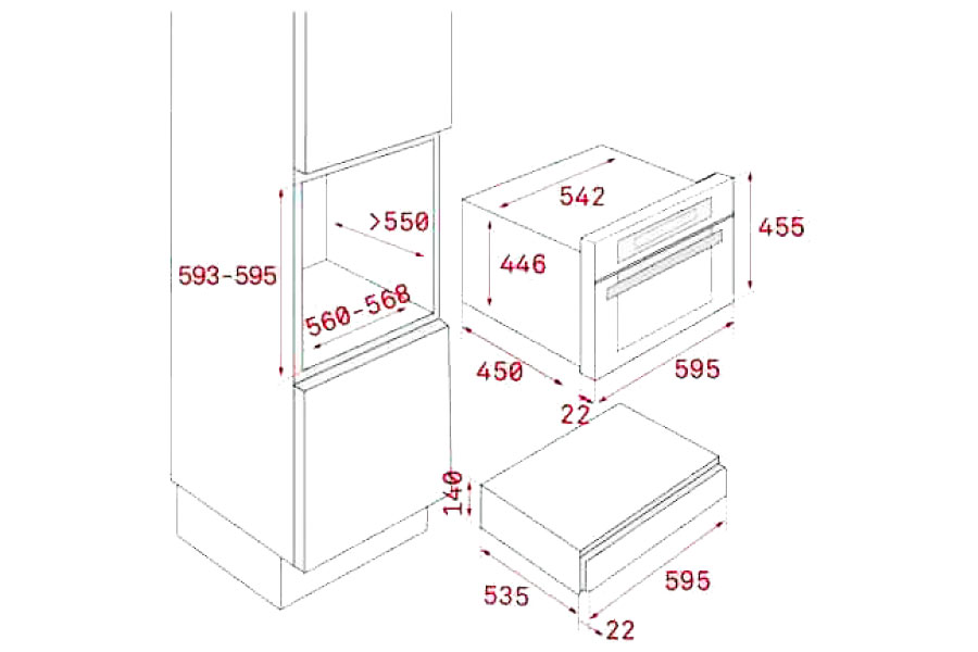 sóng và lò nướng dòng compact.