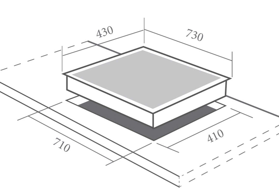 | Kích thước khoét đá | 710x410mm |