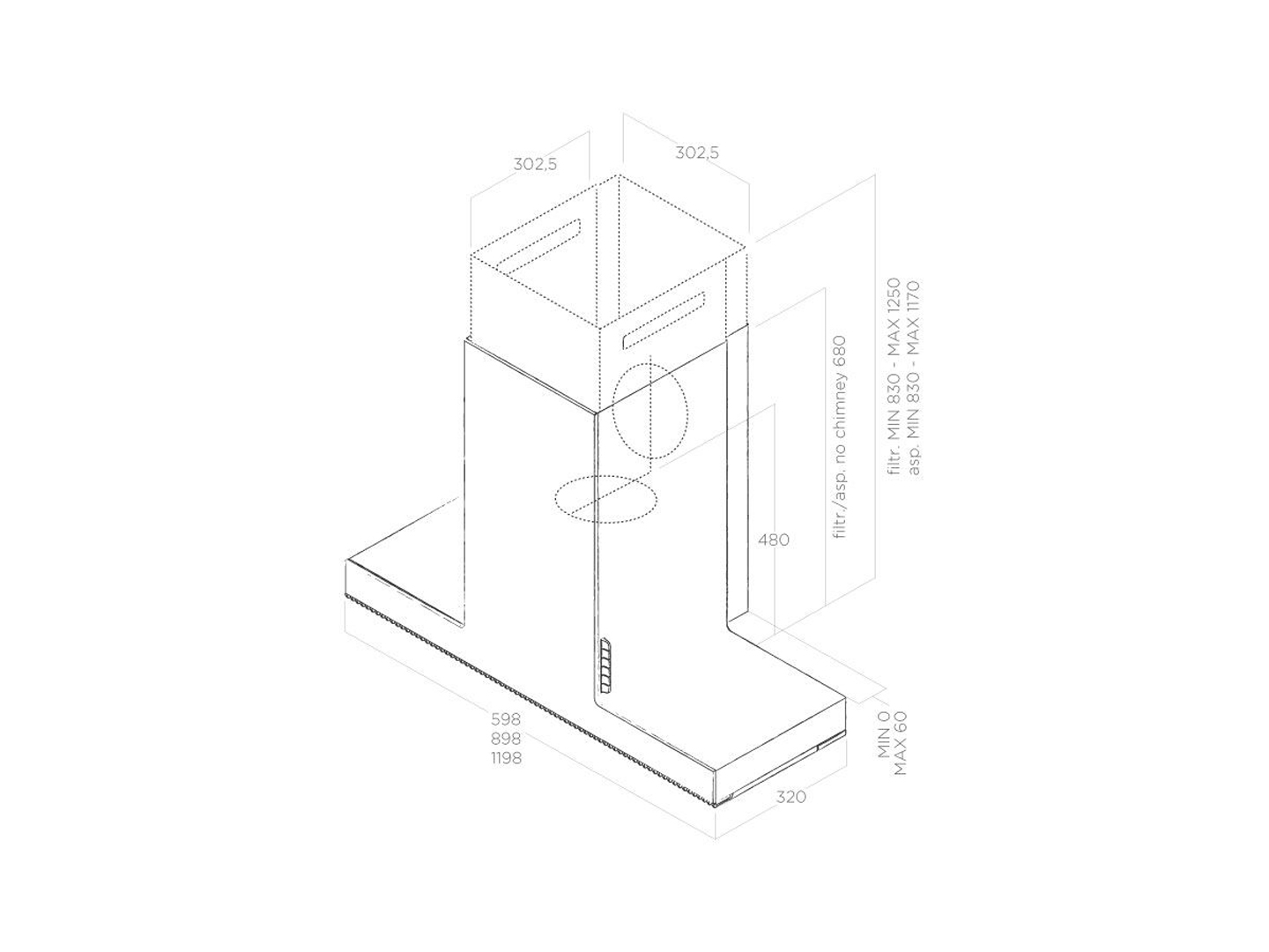 | Kích thước 32 – 60 – 90 cm | Phiên bản Ống thoát | Loại Thép không gỉ, Kính đen, Trắng Krion, Xám sáng | Loại đèn STRIP LED 1 x 7 W |