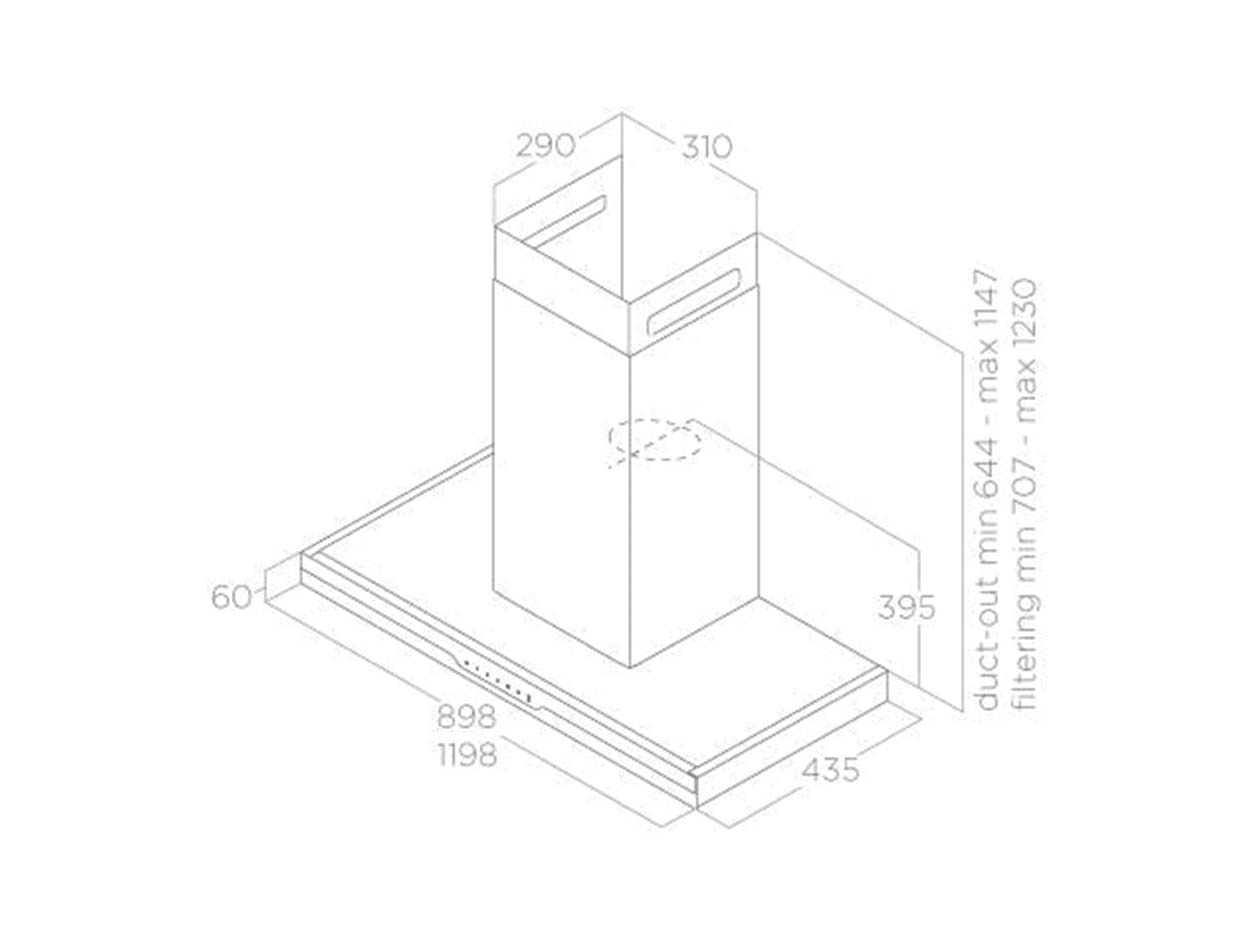 | Kích thước 90 – 120 cm | Phiên bản Ống thoát | Loại Thép không gỉ + Kính đen | Loại đèn Strip Led 1 x 7 W |