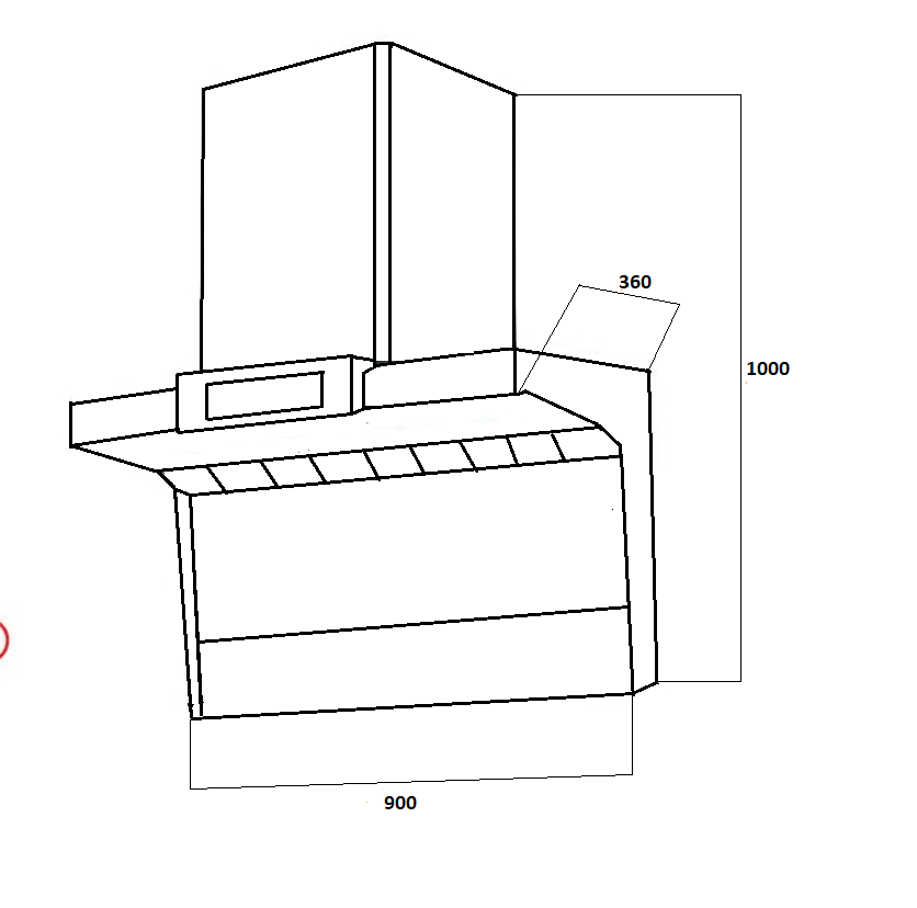 Kích thước lắp đặt: 900 x 360 x 480 mm (dài x rộng x cao)